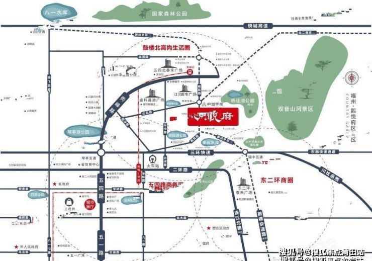 新店外环路:经园中互通、前横路,开车约5-8分钟至东二环泰禾广场;