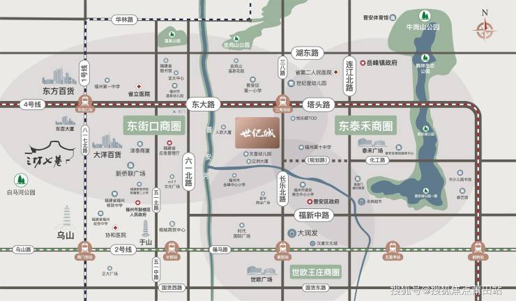 漫步即可到达金鸡山公园、温泉公园、鹤林生态公园、牛岗山公园、晋安湖公园,内揽老城繁华,外享自然静谧。