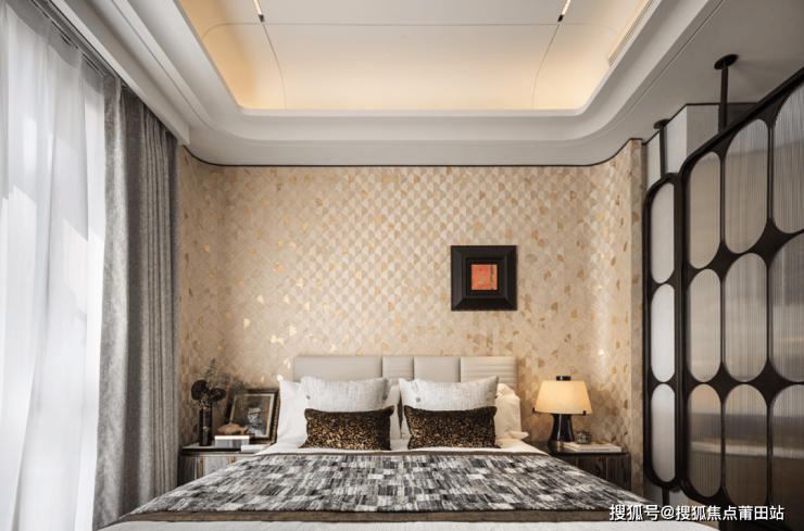 在本案的卧室空间内,有着酒店式私享主卧的氛围,高品质舒适家具,柔和的色彩辅以简洁的线条,整洁有序的陈列、收纳体系,予人以十足的放松感。