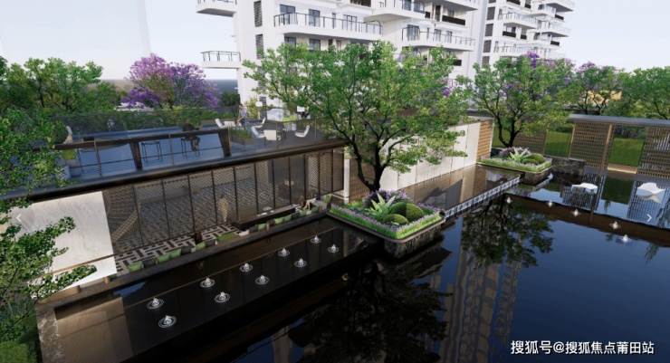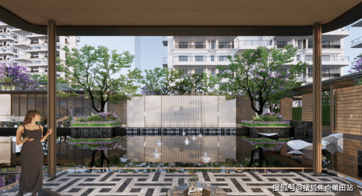 项目的社区品质营造颇有亮点。入口处打造了约50米宽的酒店式入户大门,配合“一轴四院八景”的景观体系,营造出强烈的归家仪式感。