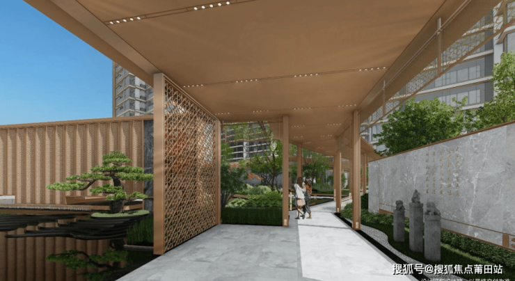 建筑设计方案融合了福州传统建筑文化元素,采用香槟金线条现代化演绎传统飞檐元素,体现了东方理想人居的理念。