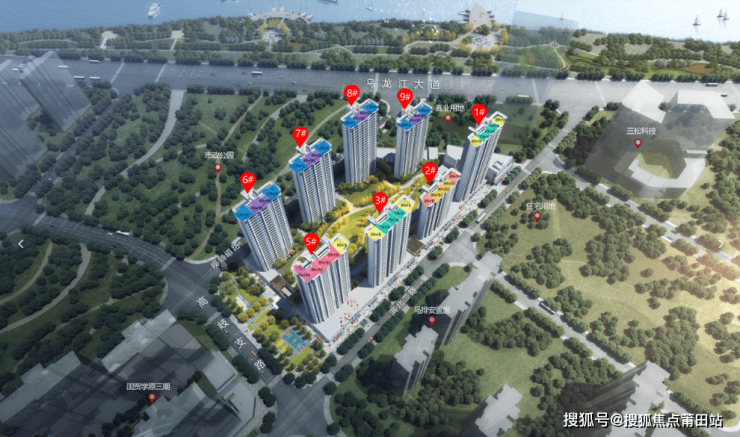 生态资源:北向直面乌龙江头排江景,出门即3400㎡体育公园,北侧还有市政公园环绕,千亩旗山湖公园近在咫尺,真正实现 “把家安在公园里”。