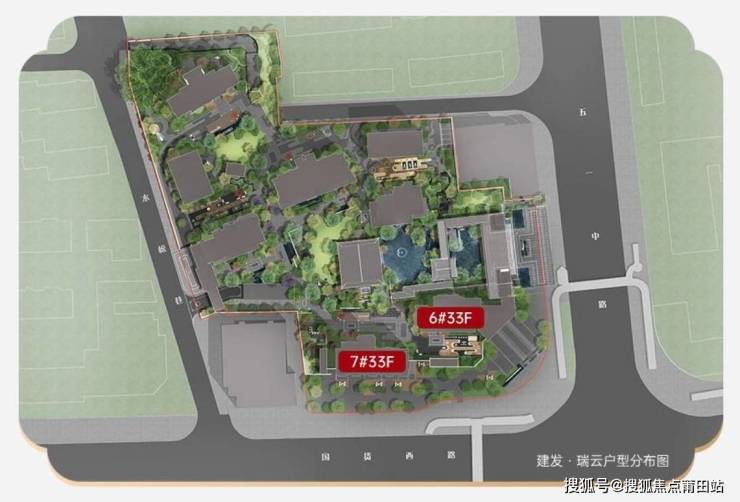 禅境中式园林:建发“王府中式”风格,强调景观层次感。