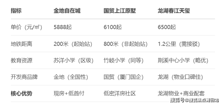 选取闽侯同价位竞品国贸上江原墅(竹岐站)和龙湖春江天玺(荆溪板块)对比。