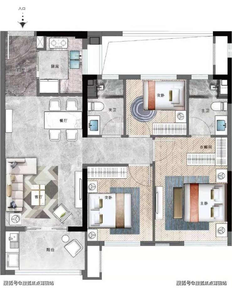 (建面约)105㎡三室两厅两卫优居户型· 三面采光,全明通透,居住舒适度更胜一筹· 三开间朝南,用阳光唤醒一天的活力· 套房式主卧,方寸之间尽赋一室美好·约6.6米南向阳台,拥揽春华秋实四季人生景致