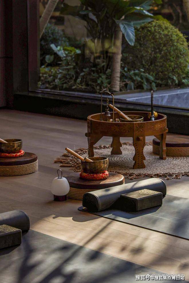 静谧的瑜伽室中,柔和的灯光洒落在温润的木质地板上,空气中弥漫着淡淡的香薰气息,仿佛隔绝了外界的喧嚣,让身心在宁静中自然舒展,重归平衡与和谐。