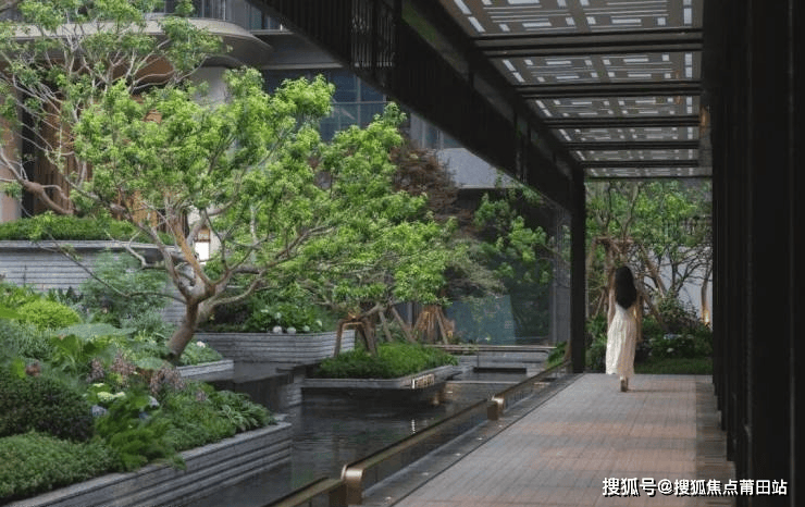 穿过光影艺廊,映入眼帘的是独具特色的山水花园,以六进景观递进,描绘山环水绕藏芳菲,演绎山水雅居的尊崇感,回家即"逛园子",空间含蓄迂回,移步异景,景色流转。