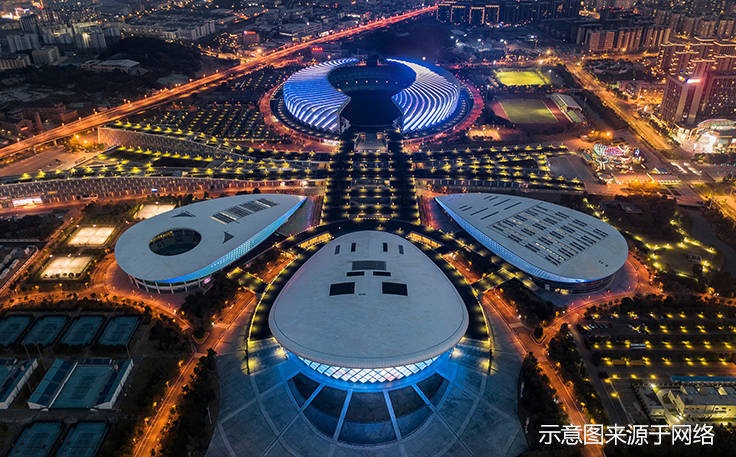 约1100亩海峡奥体中心,一场三馆 (体育场、体育馆、游泳馆、网球馆) 配置,集商业、体育、娱乐为一体的文化体育中心地标。