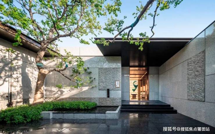 纯低密联排别墅区采用全蓝眼睛石材、铝板与Low-E玻璃组合立面,考究选材与现代设计手法相融合,呈现出雅致而不失奢华的东方宅院气质。别墅设计溯源传统东方建筑的符号特征与肌理,经由现代手法转译,突出深远出挑的檐口造型,强化横向线条的延展感。