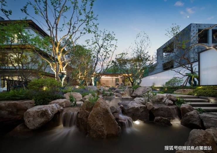 北区配备约3000㎡酒店式会所花园,地下会所承载艺术展示与社交功能;南区通过自然山水的礼序山石园林步入约1500㎡地上泛会所花园区。设计汲取古代文人雅士隐逸山林的空间意象,融入山、泉、林、台、石等元素,巧妙结合书院文化内涵与自然意境,营造富有东方哲思的景观体验。