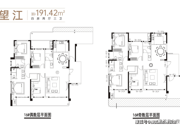 楼盘户型:3种户型,建面:143-191㎡ 4室2厅3卫 (建面:143)