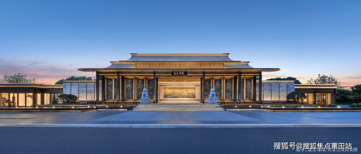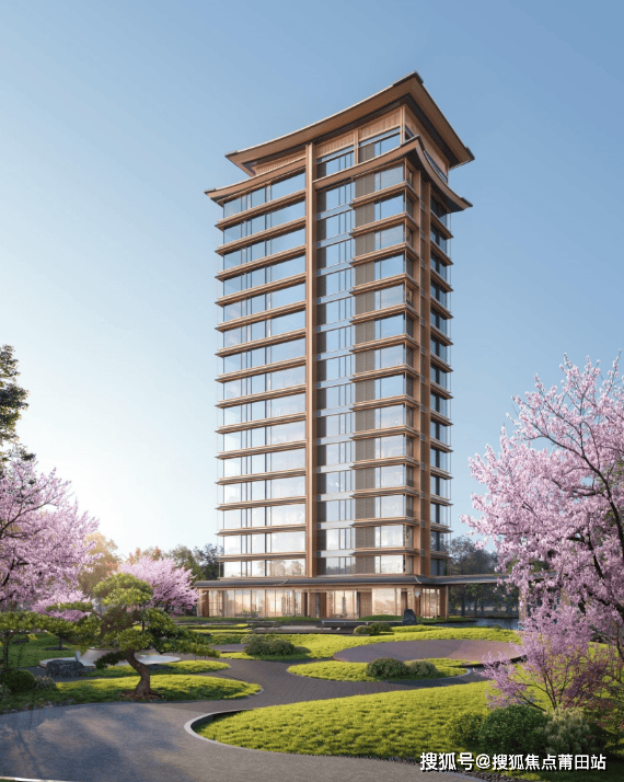 项目外立面采用干挂石材+铝板+玻璃幕墙组合,园林设计延续建发标志性的新中式风格,打造入口王府大门、精装园林、归家礼序。