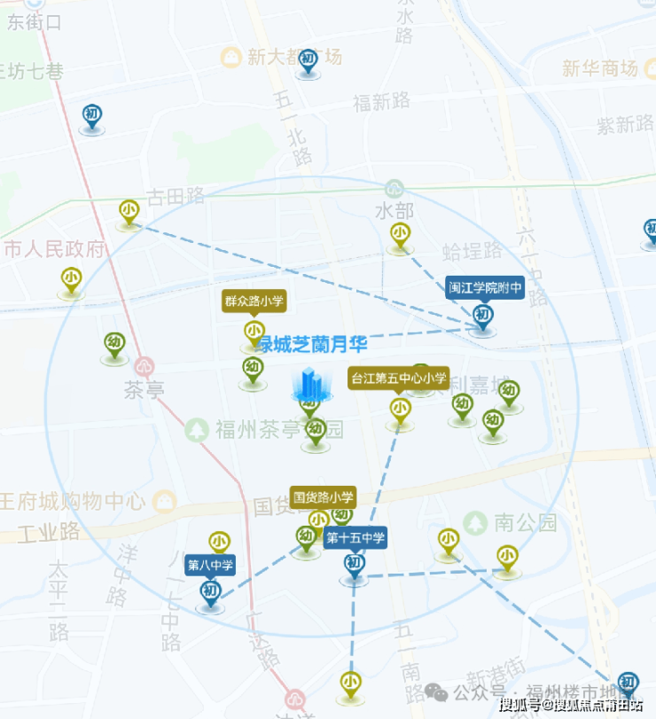 【教育】项目项目土地公告未明确划片,周边学校有群众路小学--闽江学院附中,国货路小学--第八中学,台江第五中心小学--第十五中学;周边学校其中群众路小学学区价值最好,其次是国货路小学,台五小学区价值相对较弱。