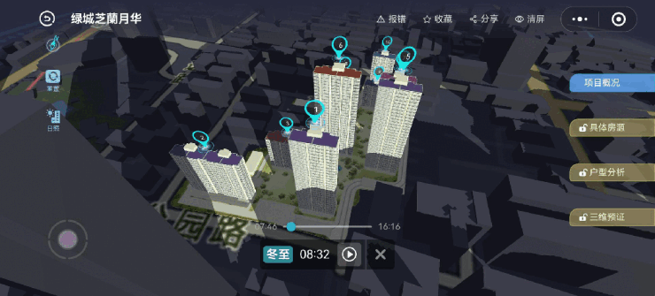 项目采用围合式布局,中间带双中央花园,由于容积率较高,地块不规则,楼栋高矮错落排布,其中5#、6#楼高层对北面的楼栋存在一定遮挡,1#和2#对3#存在遮挡;同时外部的世茂尊园项目是两栋155平的超高层,对项目的日照遮挡比较严重。