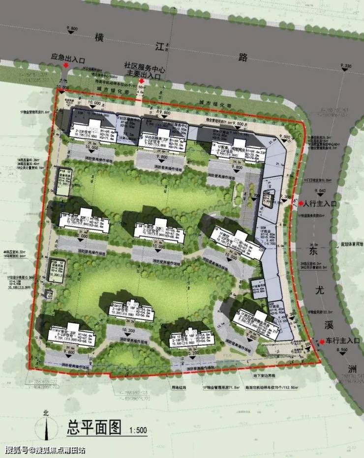 本项目总建筑面积约87392.07㎡,共规划10栋18-23层高层住宅及沿街底商。