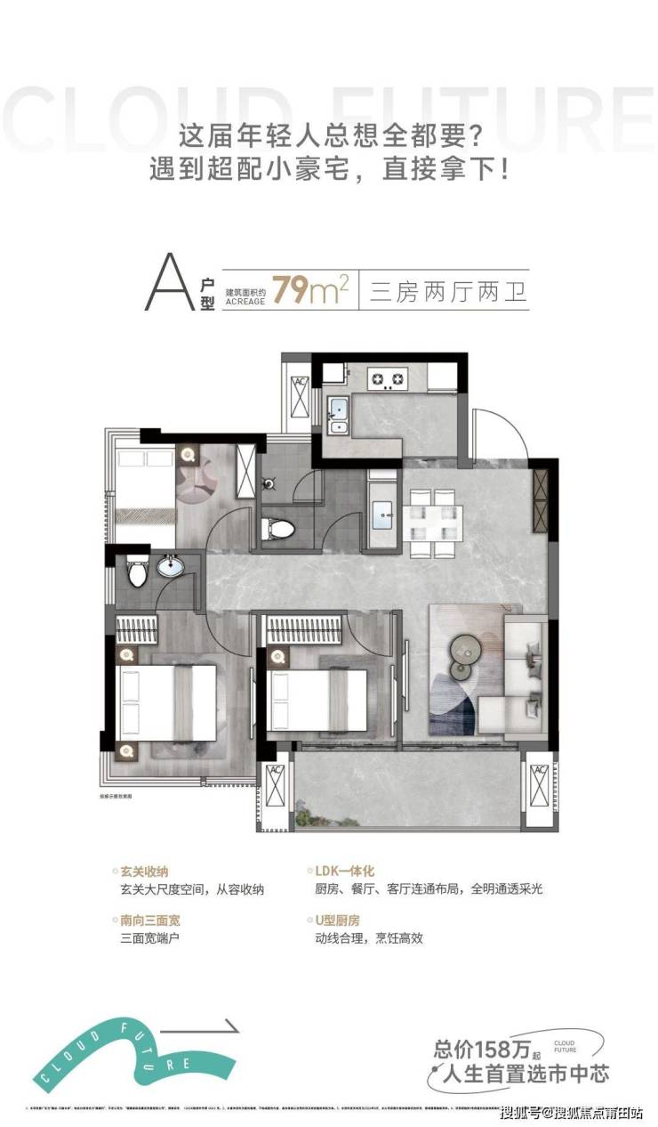 户型设计灵活:主推79-127㎡的3-4居户型,兼顾刚需与改善需求。紧凑型三居适合年轻家庭,而四居户型则满足多代同堂的居住场景。