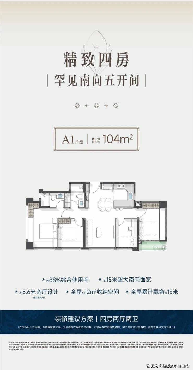 104㎡五开间朝南:岛内唯一南向面宽达15米的小四房,得房率88%,功能比肩120㎡二手房,满足二胎家庭或书房需求;