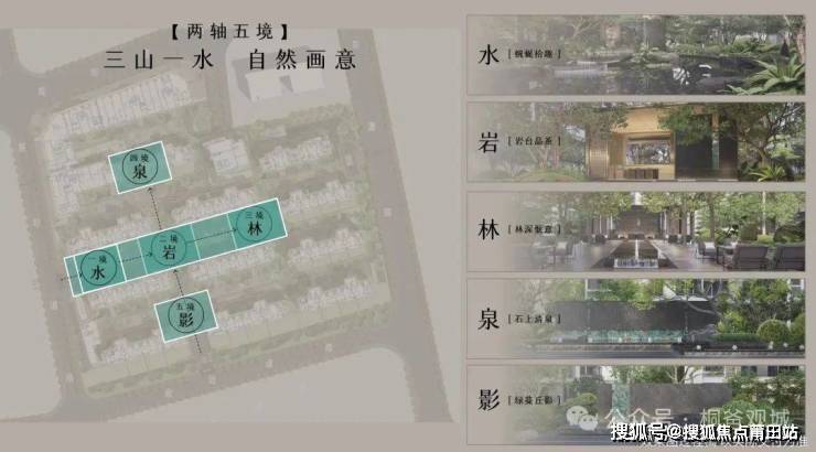 项目打造新中式园林,“双轴五境,娴雅六园"景观布局,为居者营造出独属于洋房的纯粹生活场景。格局上,原设计的一轴三境基础上,增加南北归家轴线,升级为双轴五境布局;造景上,以水为脉,串联蜿蜒拾趣、岩台品茶、林深惬意、绿蔓丘影、石上清泉五重自然画境。