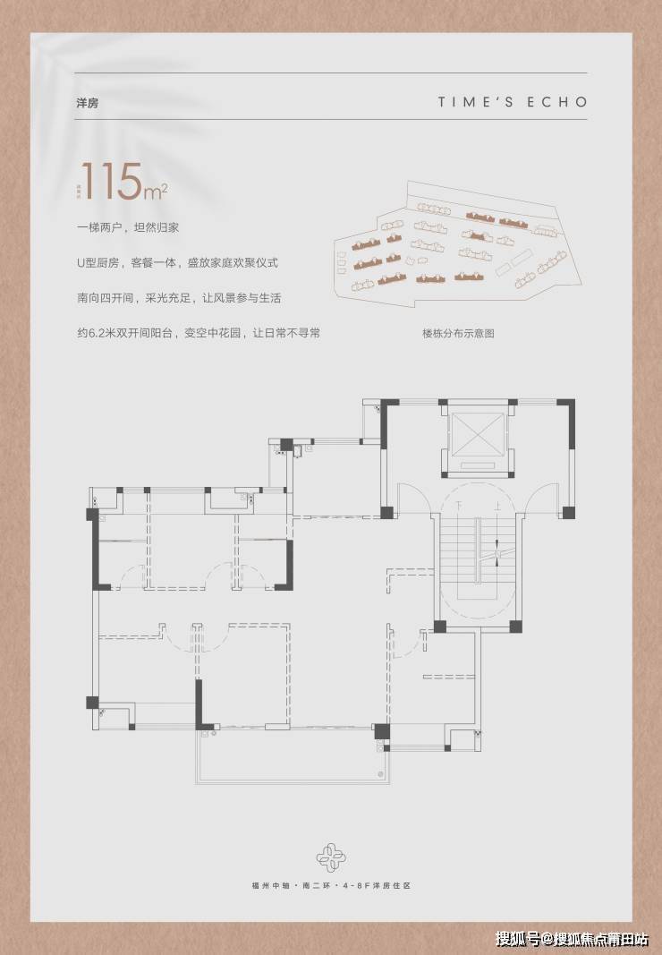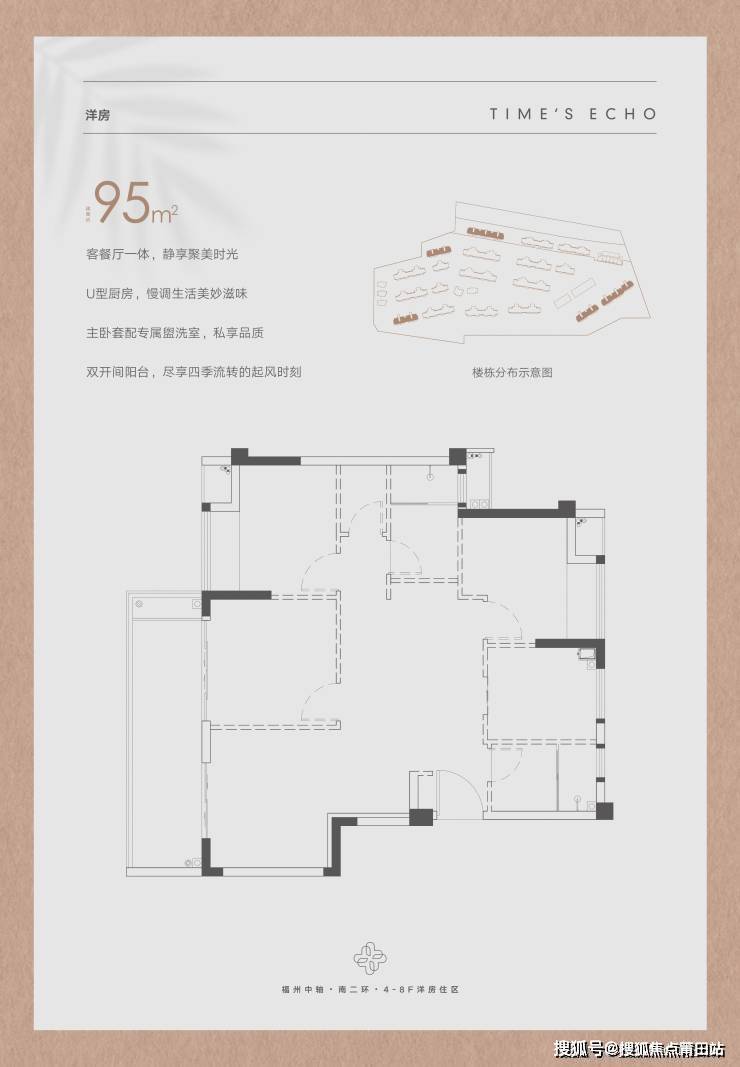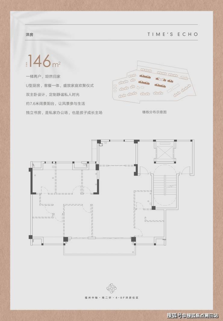 整体规划:现代简约风格立面,规划4-8层95-146平宽景洋房(一梯两户)、160-260平独栋/叠拼以及社区独立商业楼