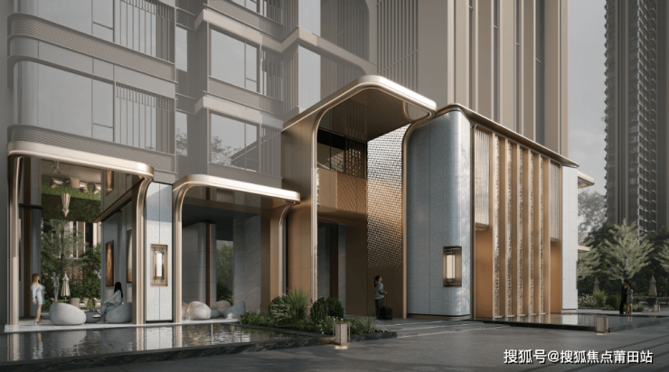 建总流花溪的住宅楼静静矗立在流花溪畔,它的外立面采用香槟色铝板与米白石材叠砌的几何造型。夜晚时分,社区的夜景照明会准时亮起。