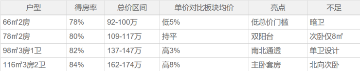户型性价比分析表