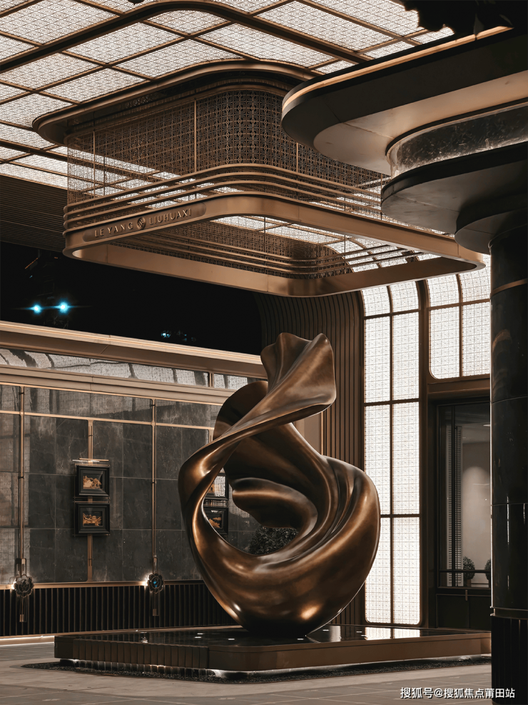 抵达建筑主体之前,首先映入眼帘的,是一处极具张力的艺术装置。设计并未急于展露全貌,而是以当代艺术为笔触,在城市的喧嚣与社区的静谧之间,划定了一道无形的精神界限。这座装置如同凝固的音符,以抽象的形态回应着雅奢的审美意趣。归家的第一眼,便是一场关于品味的默契邂逅。