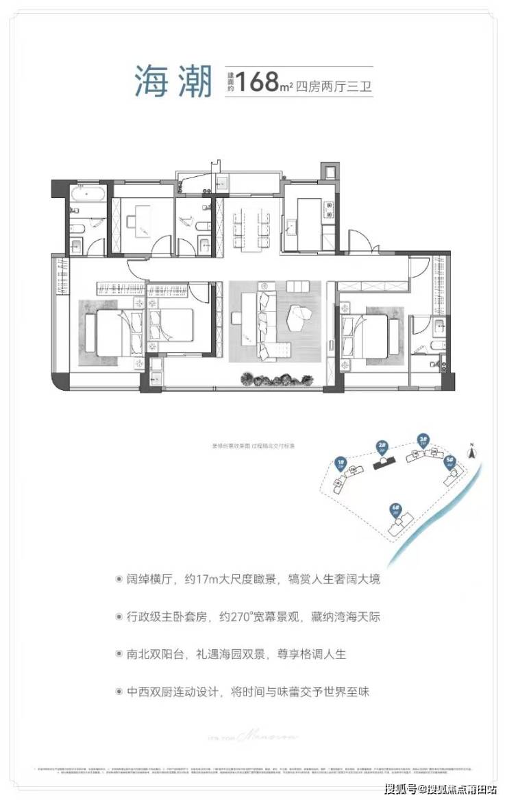 168㎡户型对标岛内199㎡产品,实现五开间朝南+超长南阳台;
