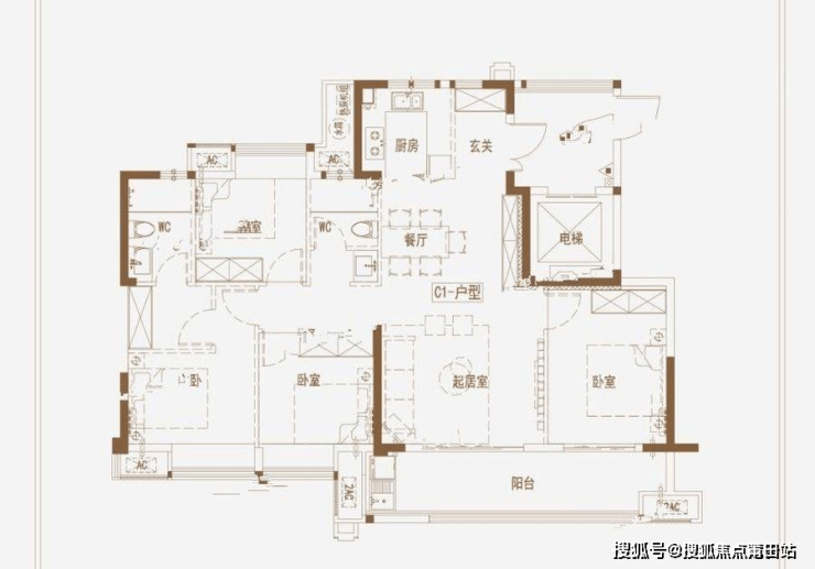 167平米:4.5房两厅三卫,两梯两户,大面宽布局,比较主流,客餐厅南北通透,阳台面宽依旧亮眼,