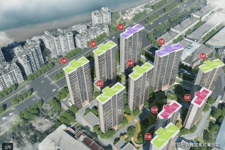 容积率约为2.4,绿地率高达约30%,共规划10栋17-23层的纯商品房住宅,均为2梯2户设计。