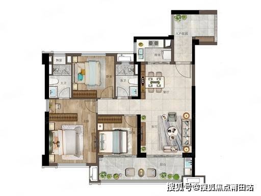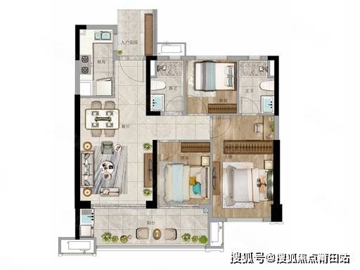 亮点:空间灵活多变、实际可做四房、约 7 米南向阳台、双卫设计,总价 83 万起,三口 / 四口之家、三代同堂适配