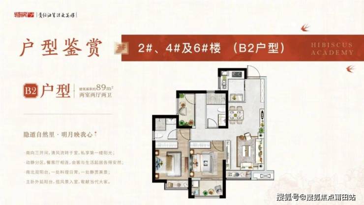 89㎡N+1的极致创新户型,三开间朝南的罕见格局,是特房·芙蓉书院的明星户型,不管是二胎家庭抑或是三代同堂都能得到满足。