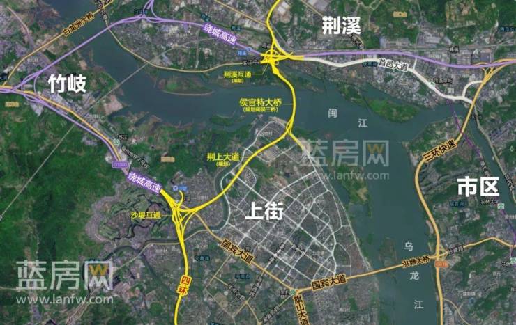 闽侯三桥及四环示意图(蓝房网制,以实际为准)