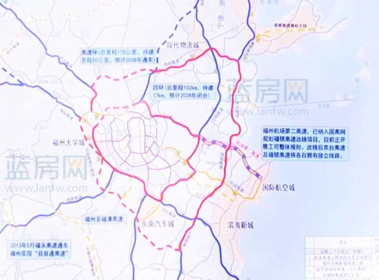 另外,福州还规划“高速环”(即五环),该线路总里程约178公里,其中待建里程约80公里,预计2038年通车(注:以实际建设实际为准)。