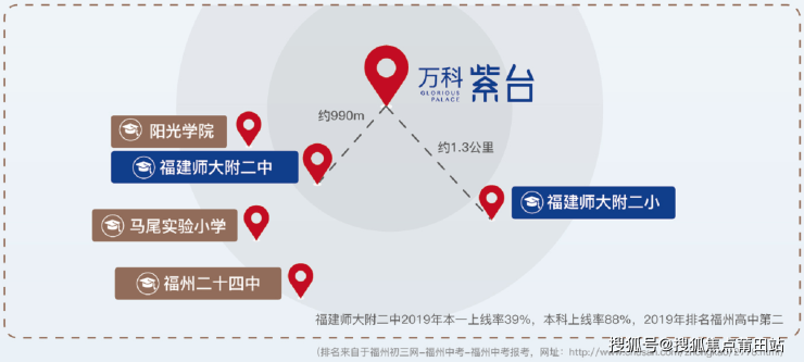 · 直线距离约990m直达省一级达标校——师大二附中(2019年本一上线率39%,本科上线率88%,2019年排名福州高中第二)
