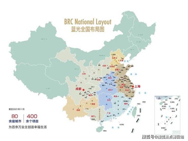 • 截至2021年10月,蓝光,已成功进驻80余座城市,开发超过400个项目,业主数量逾100万人。
