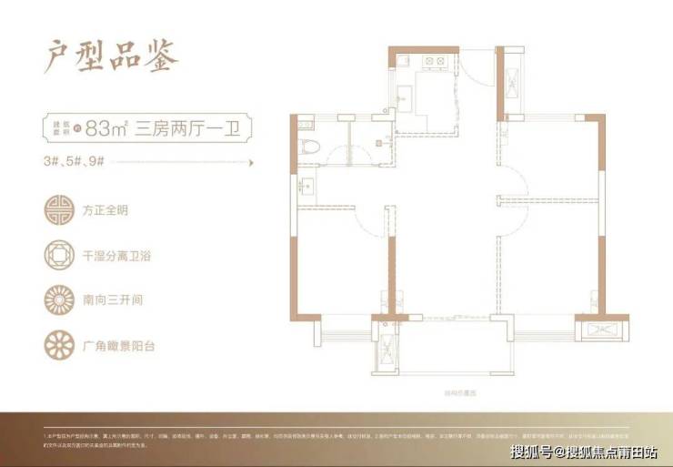 该户型为三房两厅两卫设计,双开间朝南,采用横厅布局,东侧阳台提供了充足的采光,适合追求居住舒适度的家庭。然而,其中一间卫生间为暗卫,可能会影响使用体验。此外,该户型的三开间朝南布局虽然在市场上较为流行,但这种狭长户型在市场上并不罕见,市场接受度相对一般。对于追求高品质生活的购房者而言,该户型的舒适度和采光条件仍然是其主要卖点,但暗卫问题需要权衡。