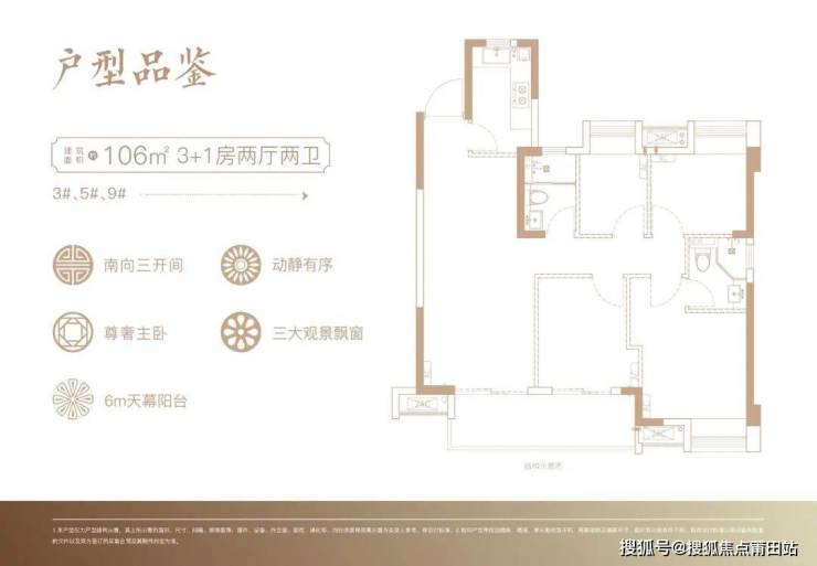 该户型为四房两厅两卫设计,三开间朝南,采用当前主流的布局方式,适合多代同堂或大家庭。尽管106平米的空间做到了四房,但目测各房间面积并不大,可能会显得有些局促。此外,入户门靠近厨房的设计可能对居住体验产生一定影响,尤其是对于喜欢烹饪的家庭来说,可能会感到不便。尽管如此,该户型的四房设计和良好的采光条件仍然具有一定的吸引力,适合对房间数量要求较高的购房者。