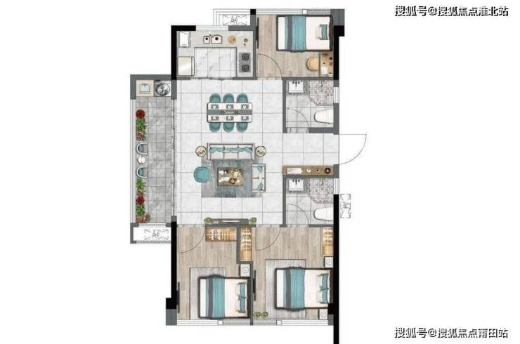 方正通透;约5.3米宽幕瞰景阳台;联通式客厅;套房式主卧,专属盥洗室、衣帽间。