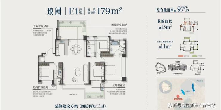 四代宅革新:179㎡顶配户型植入30㎡空中花园、独立入户电梯厅,垂直院落概念融合湾海双景,重塑高端改善标准。