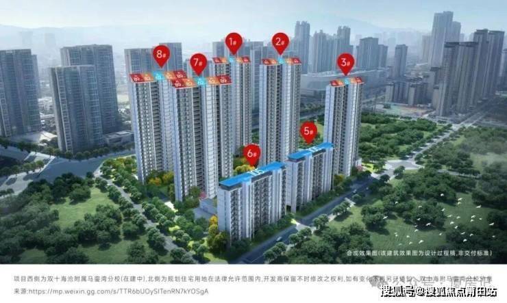 •总户数:758户;规划7栋住宅,含5栋高层(670套)和2栋洋房(88套);高层1#、2#总高31F,3#总高26F,7#、8#总高27F,洋房5#、6#总高11F;高层2梯5户、洋房1梯2户;机动车位808个,车位配比约1:1.07,部分楼栋间距约30米;