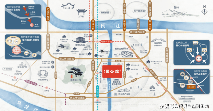 交通枢纽地位:帷幄则徐大道、南台大道双主干道贯通,地铁1号线、滨海快线F1盖山站(在建)交汇,半小时畅达鼓楼、长乐新区;
