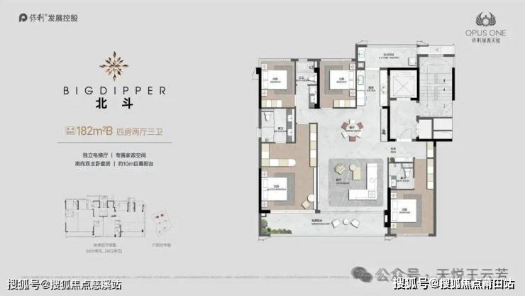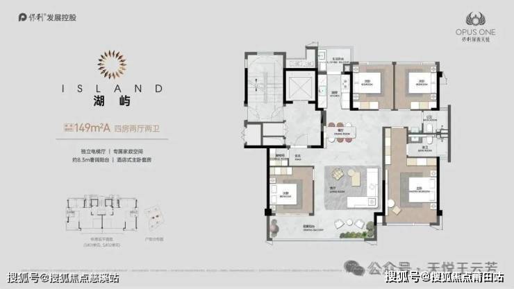 独立电梯厅,专属家政空间,约8.3m奢阔阳台,酒店式主卧套房,户型配有独立的玄关设计,提升房型结构及隐私性能。