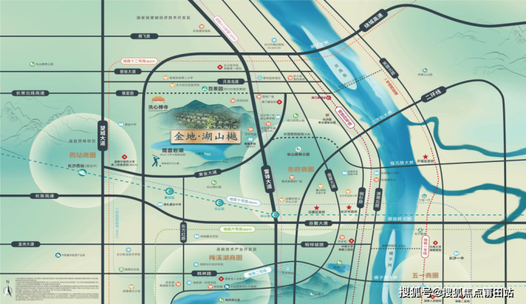 金地·湖山樾位于长沙湘江新区,观音岩湖岸一线,坐拥湘江新区与高铁西的地脉价值,享 交通、商业、教育、医疗、生态等城心资源配套。
