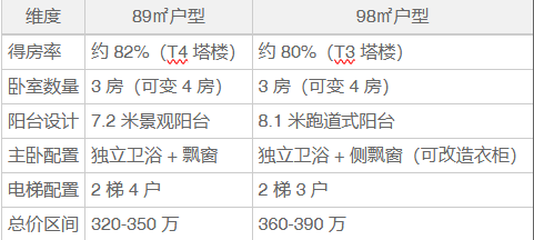 刚需上车族:89㎡户型,总价 320 万起,建议选择中高楼层,规避噪音;