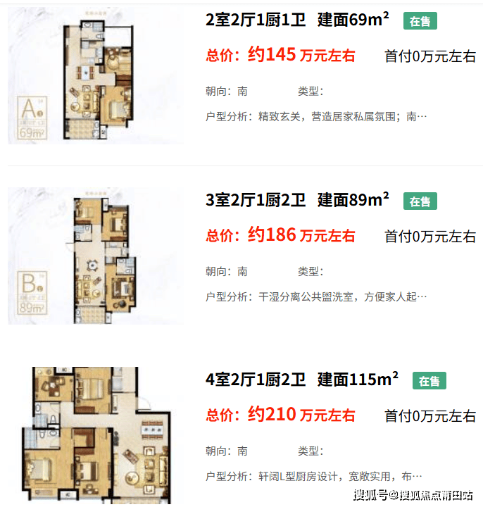 水晶榕著户型设计多样,主推69平方米两居室、89平方米三居室和115平方米四居室,满足不同家庭的需求。