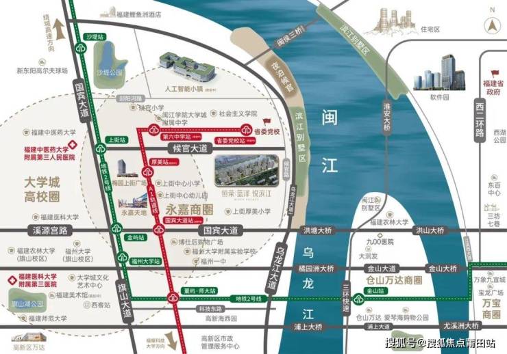 紧邻候官大道,傲踞洪塘大桥桥头堡、脉连三环、福州绕城高速,地铁2号线轨交覆盖,多为立体路网纵横交通。