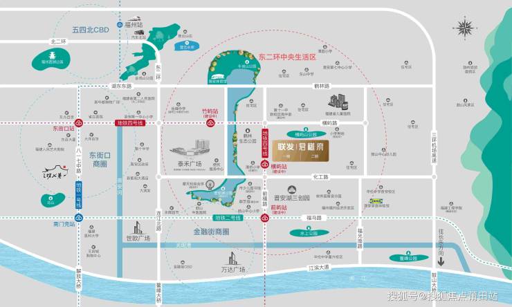 联发·君樾府占据东二环核芯地段,坐拥城市最优质的资源。项目距离四号线地铁口横屿站仅135米(直线距离,数据来源百度地图),便捷的交通网络让居者可以快速通达全城。同时,项目周边配套设施完善,距离省儿童医院仅600米(直线距离,数据来源百度地图),为家庭成员的健康保驾护航。步行700米(直线距离,数据来源百度地图)即可抵达晋安湖公园,这里是天然的氧吧,为忙碌的都市人提供了放松身心的好去处。项目距离东泰禾广场仅1.2公里(直线距离,数据来源百度地图),一站式满足购物、餐饮、娱乐等多元化需求。这些优越的地理位置和完善的配套,共同构成了联发·君樾府不可复制的城芯生活价值。