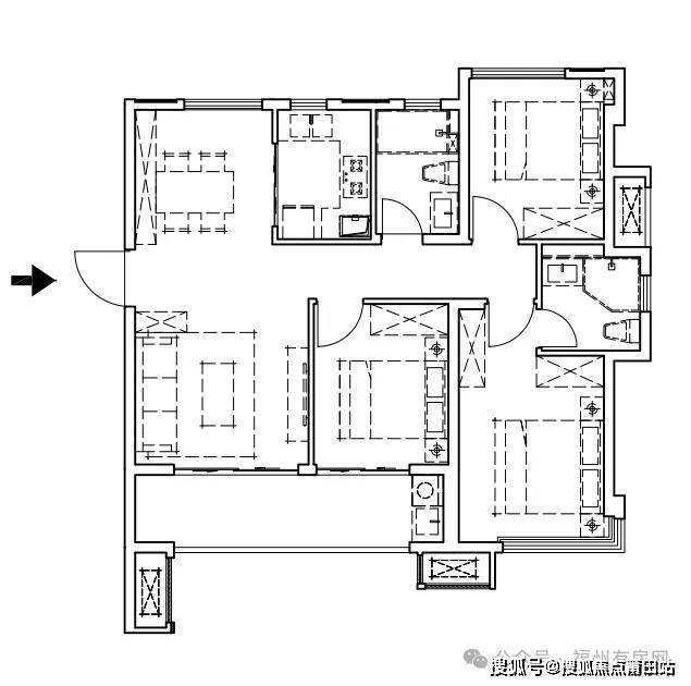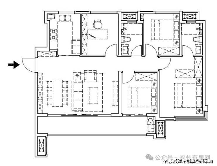 【凌湖】建面约120㎡(A)户型 四房两厅两卫