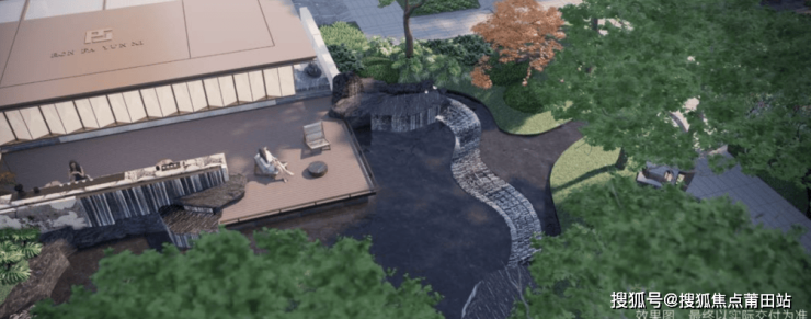 泗水归堂环岛落客设计与景墙,营造了高奢礼序的归家仪式感。整个社区由GVL怡境国际设计集团操刀,以“虹夕诺雅”为灵感,结合福州三坊七巷的空间布局,打造“一轴四院八景”的景观体系。