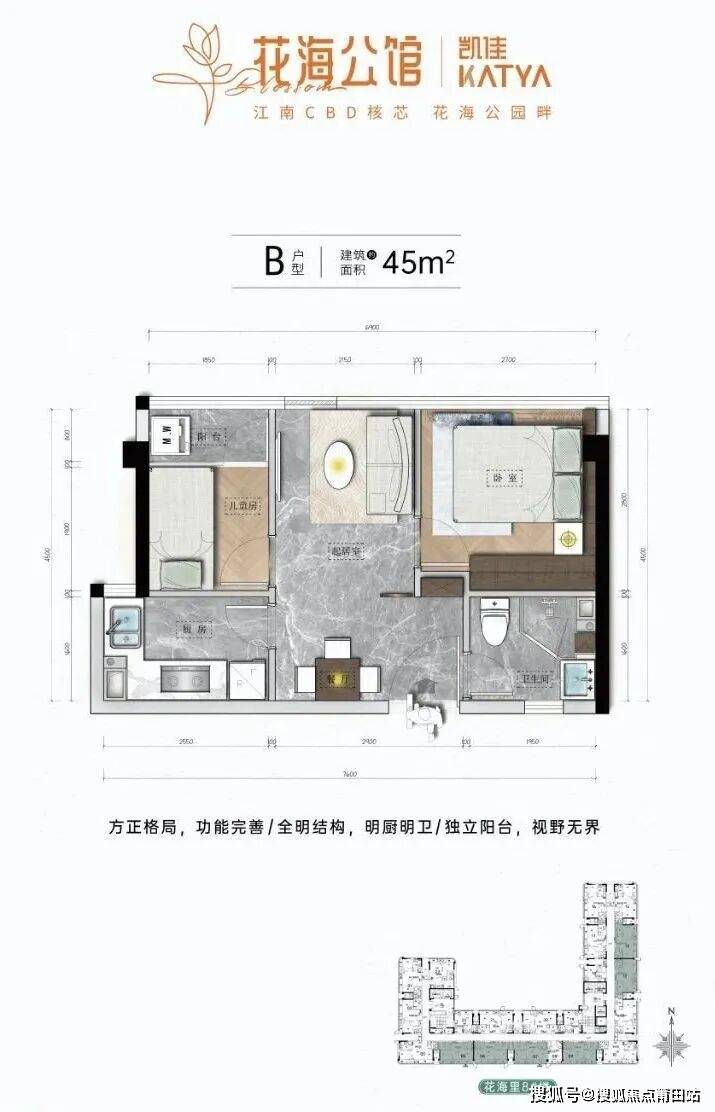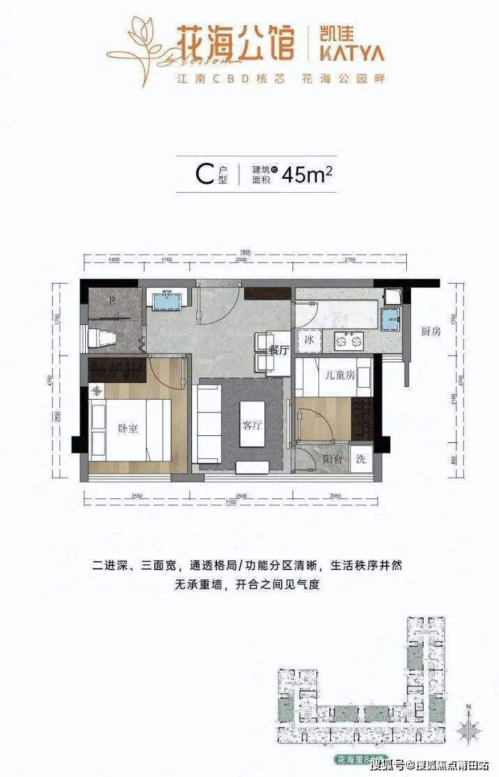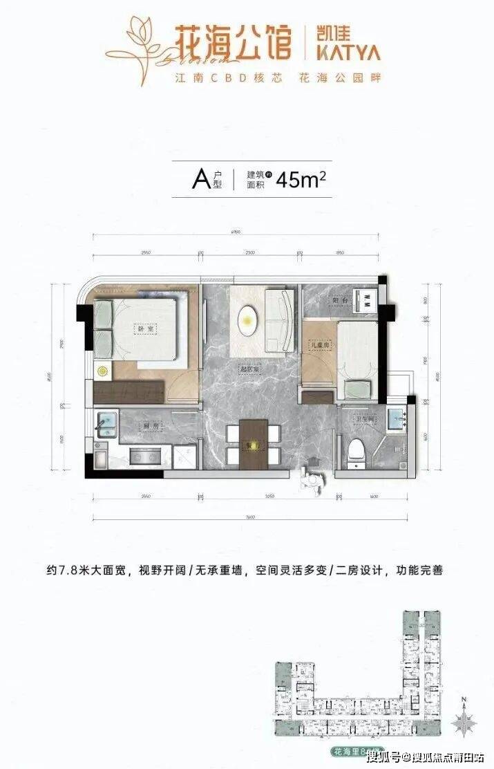 此番对外销售的主力户型为45㎡公寓,拥有70年住宅产权,享有民水、民电、燃气入户。此外还有18平、25平户型。